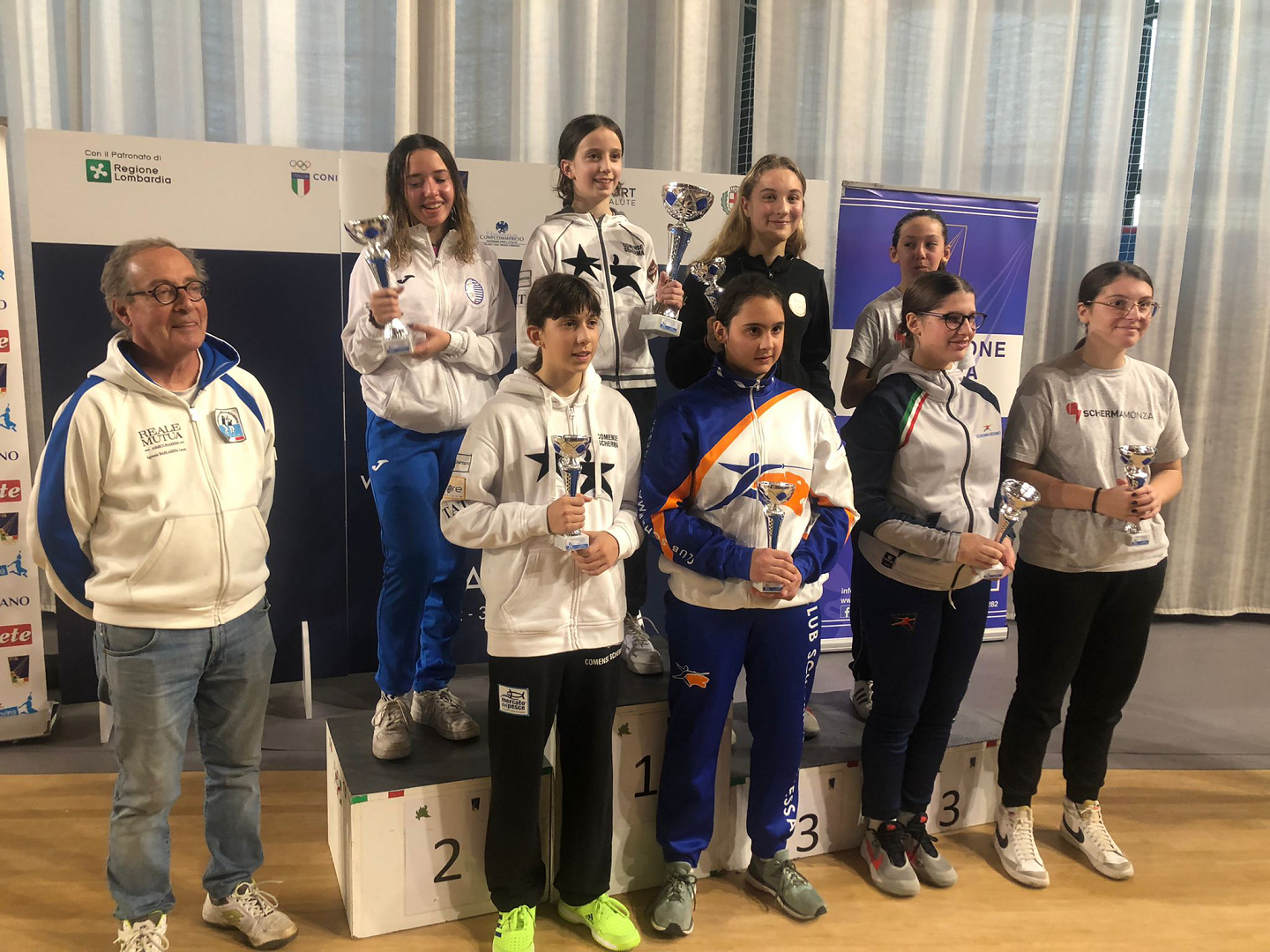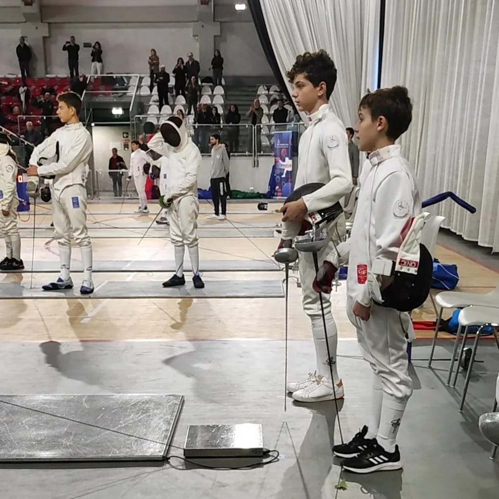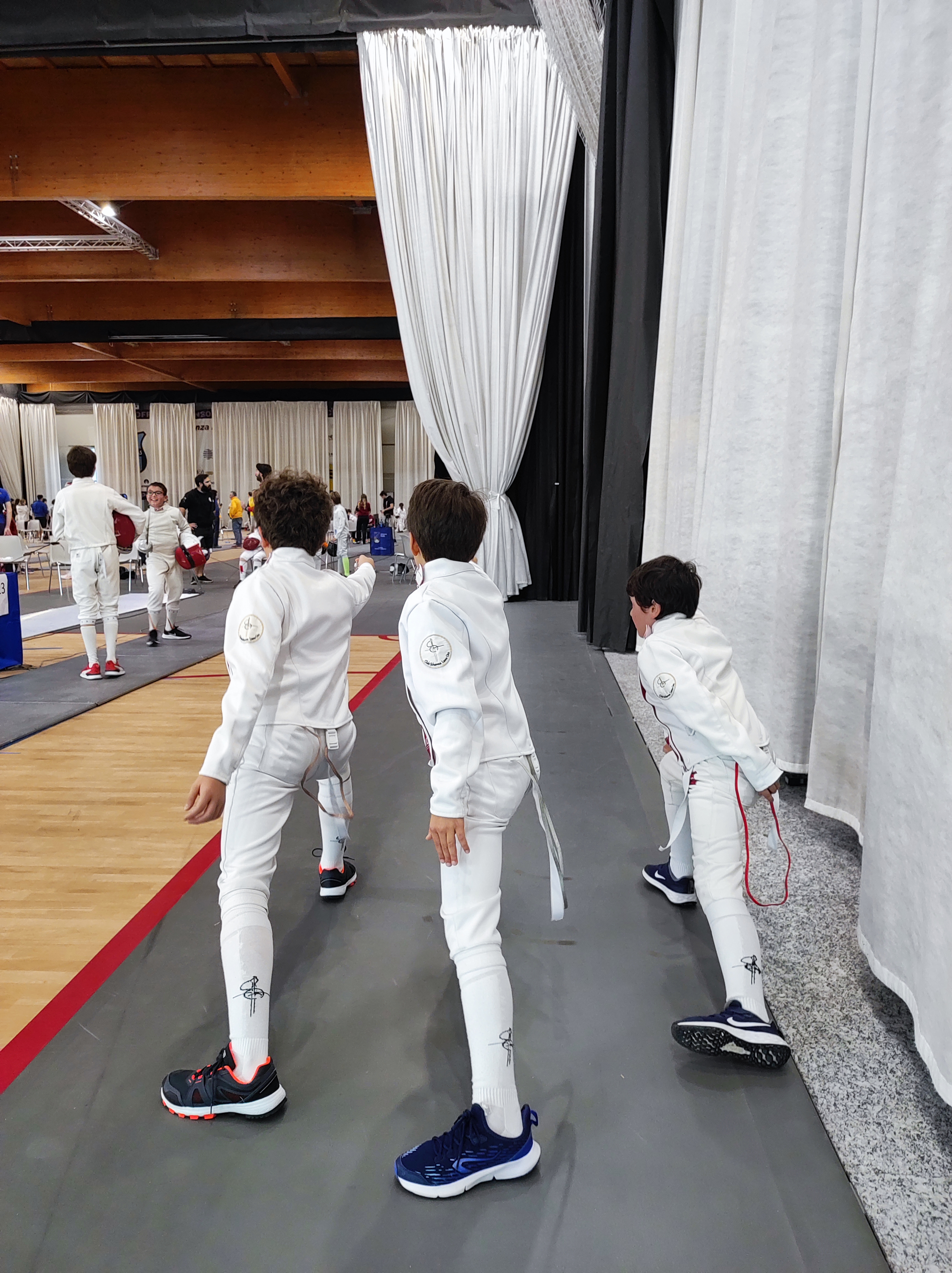 Nel pomeriggio Leonardo Magni (Giovanissimi), Elia Frigerio e Niccolò Chiaramonte (Maschietti) ben difendono i colori nero-oro, Leonardo vince un assalto in girone e si ferma alla prima diretta per soli due punti, meglio Elia che vince la paura e un assalto ed uno perso per un solo punto dopo 4 stoccate doppie sul 4 pari, bravissimo Niccolò che tira molto bene e dopo 3 vittorie in girone perde per un solo punto la diretta (10-9). Si classificano rispettivamente 47°, 46° e 34°.