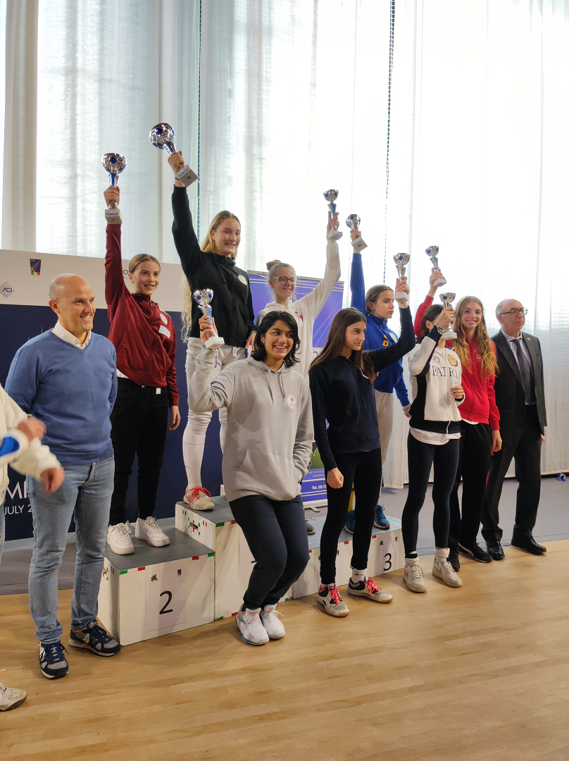 Inanella una stoccata dopo l'altra e conclude al primo posto, ma non ha il tempo di festeggiare perché l'attendono nuovamente in pedana per la gara di fioretto, in girone tutte vittorie, entra agevolmente nei primi 8 (15-3), prosegue per i quarti 15-8, arresta la sua corsa in semifinale, concludendo la gara sul terzo gradino del podio.